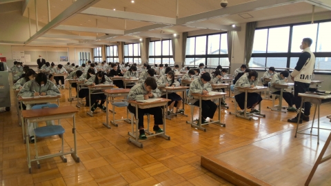 2月25日(水)、1・2年生は学年末テストの2日目に取り組んでいます。