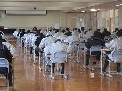 これまでの学習の総まとめになります。3年間の学びで得た知識をつかって、問題に挑んでいます。考えている姿を見ると、頭から湯気がでてきそうですが、それがみんなの思考の姿なのだと思います。あと1日頑張りましょう。