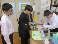 The first-year students listened to the librarian’s explanation about how to use the library and how the books are classified. After the explanation, the students picked up books that caught their interest and immediately began borrowing them. Their eyes sparkled with excitement at the variety of books, different from those in their elementary school library. From now on, let’s make use of the library, encounter many books, deepen our knowledge, and enhance our empathy and imagination.