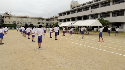 9月25日(木)1~2限目に体育祭の全体練習をしました。
