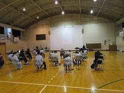 毎年行っている本と音楽の会を、今年は感染対策として、体育館の広い会場で一クラスずつ行いました。今日が2年生、明日が1年生になります。