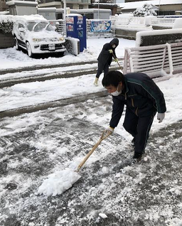 朝から職員で、校門付近の雪かきを行っています。みなさん気をつけてください。