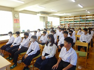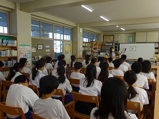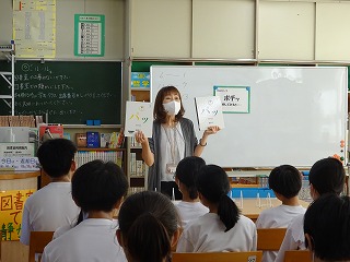 1年生の国語の時間に、司書さんによるブックトークを行いました。テーマは「ポチッと押してみると」です。理科でポチッ、スマートフォンをポチッ、やる気スイッチをポチッ・・・など、様々な「ポチッ」をテーマにした本を紹介していただきました。また、絵本『頭につまった石ころが』(作:キャロル・オーティス・ハースト、絵:ジェイムズ・スティーブンソン、訳:千葉茂樹)の読み聞かせもしていただきました。「あなたの頭の中につまっているものは何ですか」と、問いかけてみたくなる1冊です。読書の秋、みなさんのスイッチを押す1冊に出会えますように。