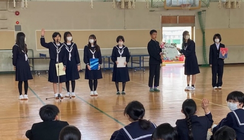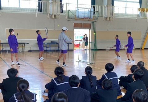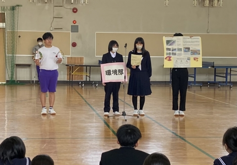4月8日(火)放課後、1年生への部活動紹介を行いました。明日から始まる部活動体験に向けて、先輩たちがアピールしました。