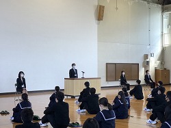 業式・入学式を祝うかのように、あたたかな春の日差しの中で、新しい学年をスタートすることができました。始業式の中で、「自主性・主体性」をもって、色々なことに取り組んでいこうという校長先生からお話がありました。3年生は進路を意識して、2年生は先輩として、1年生は中学生として、いろいろなことにチャレンジしていきましょう。