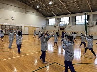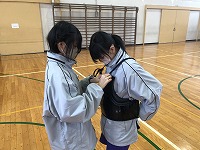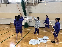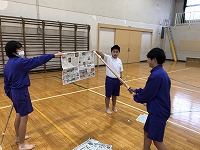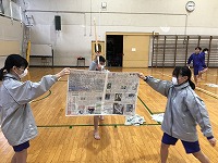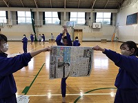 また、翌日の授業では新聞紙を使って、まっすぐ竹刀を振り下ろす練習をしていました。少し恥ずかしそうに「面(メン)」と声を出していましたが、慣れてくると生徒たちは楽しそうに活動していました。