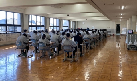 2月25日(火)、今日から3日間の学年末テスト(1・2年生)が始まります。昨日までの寒気のため今朝も冷え込んでいます。大型ストーブを使いホールを暖かくしています。みなさんの力を存分に発揮してください。