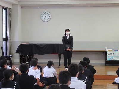 これから5月24日まで保健の授業や3年生のクラスを担当していただきます。