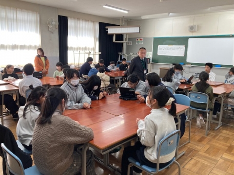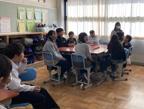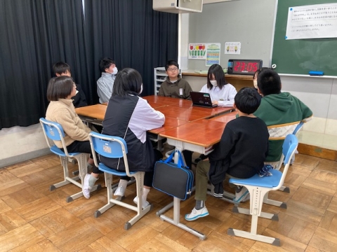 小学生と中学生の混合で16のグループをつくり、4教室に分かれて話し合いをしました。