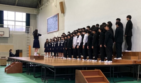 「旅立ちの日に」全校生徒による式歌。実際に歌っています。