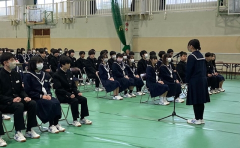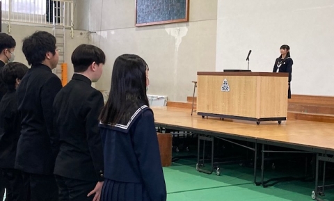 3月5日(水)、全校生徒とともに卒業式のリハーサルを、式次第に沿って行いました。