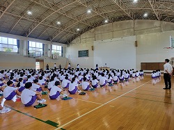 短時間でしたが全校体育館に集まり、伝達表彰と始業式が行われました。