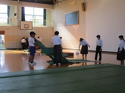 3年生が文化祭に向けて、体育館の会場準備を行いました。