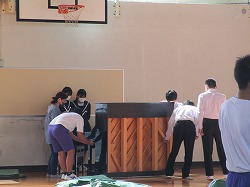 ピアノや看板が出されると、本番さながらの練習ができます。今日から歌練習も始まります。自分たちの最高の合唱が響かさせられるよう練習していきましょう。