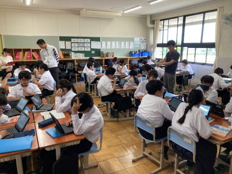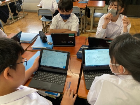On Tuesday, May 27, we observed a first-year Health and Physical Education class (health section). The unit was titled “Healthy Living and Disease Prevention.” Students read cases assigned to each group, identified health-related issues, and discussed possible solutions. Once again, the thinking tool “Jellyfish Chart” was used.