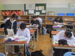 放課後、1・2・3年生の各教室で、テスト質問会をしました。自主的に質問したい生徒、勉強したい生徒が残り、それぞれの教科の先生に、テスト範囲の内容でわからないところや自信のないところなど、熱心に質問をしていました。質問した生徒からは、「あ、そうか。」「なるほど。」など、納得の声があがっていました。