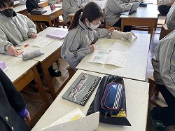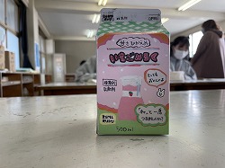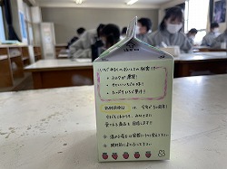 2年生の美術科では、新商品企画書を作成し、牛乳のパッケージ作りに挑戦していました。商品の売り手としては、パッケージのデザインは情報を絞り込むことがマストとされていますが、生徒が作り上げた牛乳のパッケージはどうでしょうか。レタリング・商品名・色遣いなどなど工夫ある品名パッケージとなっていると思います。