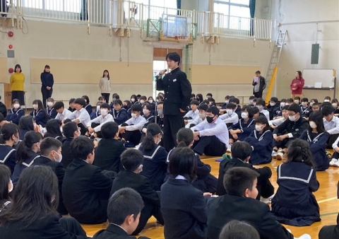 途中のクイズでは礼節ある発表の態度や周囲の温かい反応があり、富洲原中学校の生徒が受け継いできた学び合う力を感じました。