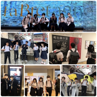 修学旅行最後の活動である上野分散学習が始まりました。雨の中ですが計画通りに美術館や博物館、動物園などを班で周り、分散学習をしていきます。