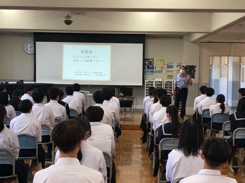 今日は2年生・3年生の生徒に向けて、少年支援センターの方が法教育を行ってくれました。