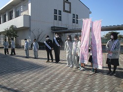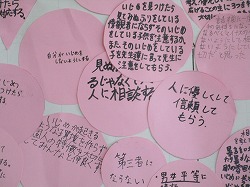 「いじめ反対の『行動』を起こそう~まわりが変わればいじめはなくせる!」をスローガンに、ピンクシャツの替わりにピンクリボンをつけてアピールしました。