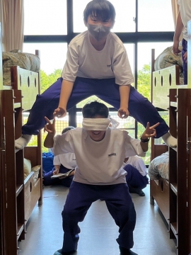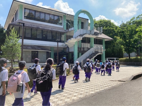 自然の家に到着。予定よりも早めに進行しています。次の活動はウォークラリーです。