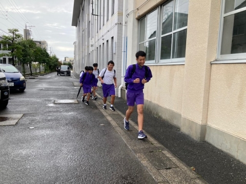あさけプラザまで防災ランニング。背負っているのは非常持ち出し袋に見立てた重たい荷物です。