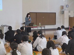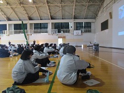 保護者と生徒がともにネットモラルについて考える研修会を行いました。講師は愛マムズITクラブの佐藤さんです。インターネット上で発生するコミュニケーショントラブルなど、具体的な事例をあげて説明していただきました。後半は保護者対象に質問会の時間も設けました。