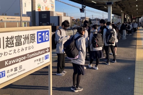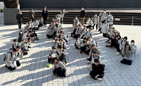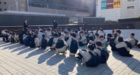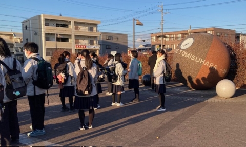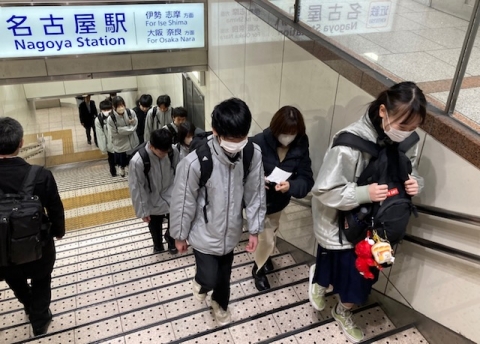 1月29日(水)、2年生が名古屋分散学習に出発しました。風が冷たいですが、晴れています。