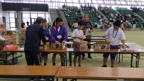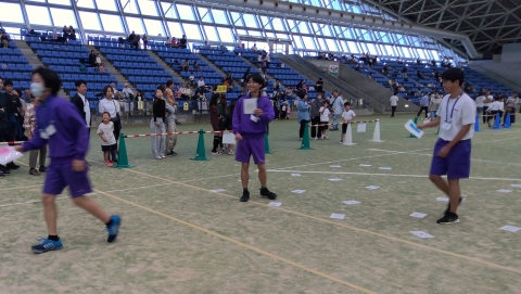 10月19日(日)、四日市ドームでは「第6回とみすはら大運動会」が開催されています。中学生たちは町の大人や子どもたちとともにいろんな種目に出場して、運動会を盛り上げています。運営スタッフとしても活躍しています。
