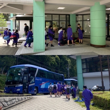 少年自然の家に到着し、一旦大きな荷物を置きます。再度バスに乗り込み、三重県環境学習情報センターに向かいます。