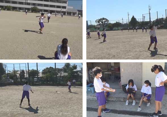 前回の授業の振り返りの中から、「打球が飛ばない場合はどうしたらよいか?」や「まっすぐにライナーを打つためにはどうしたらよいか?」などの課題をもとに、班でアドバイスをしながら楽しく学びを深めていました。