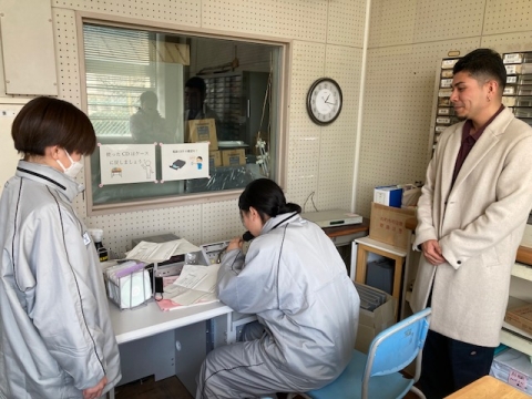 1年生放送委員も英語で回答。"Nice challenge!"です。