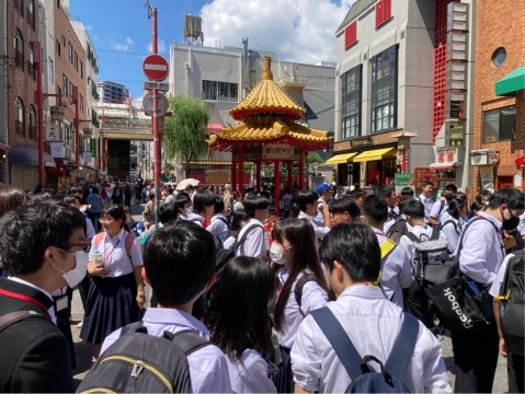 今日のお昼は南京町で班ごとに食べます。食事や買い物をしてから、大阪市内の分散学習に向かいます。