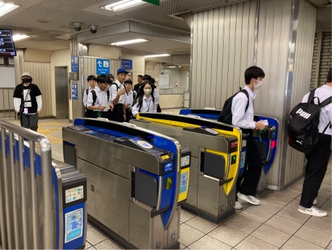 元町駅を出ます。各自TOICA使用してます。