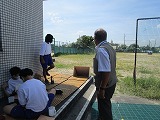 大きさも大・中・小とそれぞれ。水の量などを加減しながら、雲井先生お手製の発射台からスタートです。よく飛ぶものは20Mを越えました。