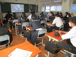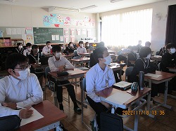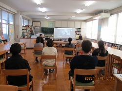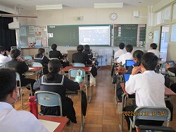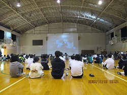 本日は中学校区の人権講演会を行いました。感染対策のため、オンラインで会場と講師の先生をつなぎ行いました。「共に生きるために・・・」で講演いただいた松田愼二さんの言葉を通して、人と人とのつながりについて考える時間となりました。地域やPTAの方にもご参加いただきました。ありがとうございました。