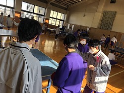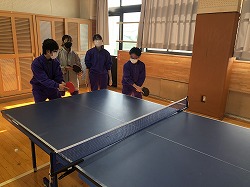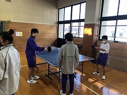 今日は1年生の体育の授業で「卓球」を行いました。1年生は卓球部の生徒が多く、生徒同士で交流を行い、学びを深めていました。基本となるフォアハンドとバックハンドを学ぶグループや、ドライブ回転やスマッシュを学ぶグループなど個人の目標・課題に合わせて練習する姿がありました。教師から指導を受けるよりも楽しそうで主体的に学んでいる様子でした。