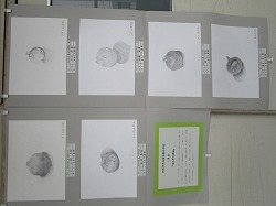 学校代表として出品していた作品を、美術室前に展示をしています。さすがに代表作品だけあって、一つひとつ個性豊かな作品となっています。