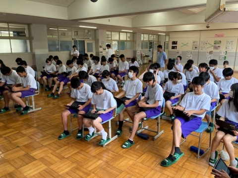修学旅行で大変お世話になった日本旅行の曽根様をゲストティーチャーに迎え、まずは旅のお仕事についてや、いい旅行の作り方等を教えていただきました。