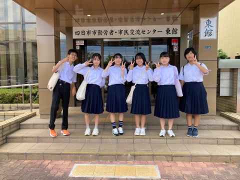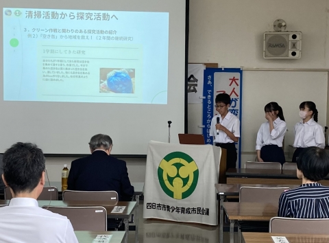 6月15日(土)午前、3年生SL班の6人が、四日市市青少年育成市民会議の総会において、地域活動実践発表を行いました。