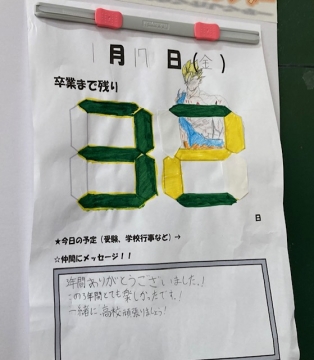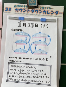 1月17日(金)、3年生の各教室で「カウントダウンカレンダー」が始まりました。