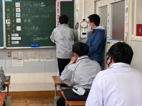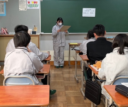 カレンダーは一人一枚作成。仲間へのメッセージを読み上げます。