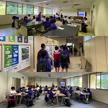 三重県環境学習情報センターで環境学習を行います。食品ロスグループと買い物グループに分かれて学んでいきます。