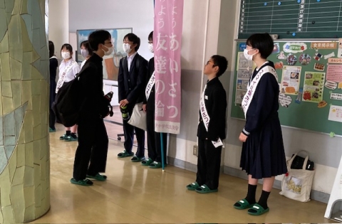 Led by the student council, everyone who gathered early in the morning greeted others together. As we exchanged greetings, smiles naturally appeared on everyone’s faces, and a cheerful feeling spread.