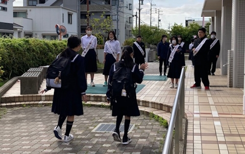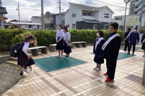 5月8日(木)の朝はあいさつ運動からスタートしました。