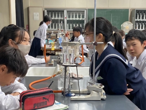 10月31日(木)、理科室では1年生がエタノールの沸点を測定していました。1分ごとに温度を測り、グラフにします。