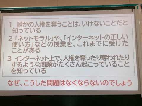 11月6日(水)、2年生がメディア・リテラシーについて学びました。反差別人権研究所みえ(ヒューリアみえ)の荻田研究員にお越しいただき、一緒に考えました。