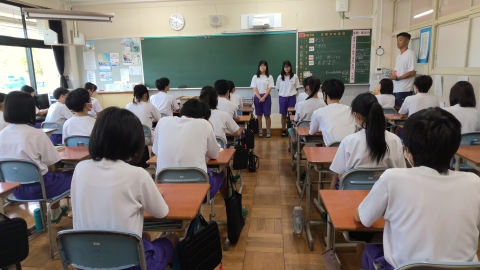 9月24日(水)朝読書の時間に、生徒会役員選挙の候補者が、各教室で演説を行っていました。