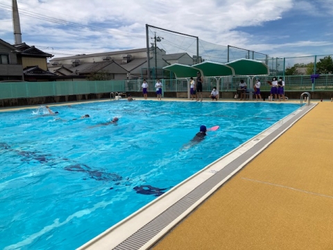 2年体育。2限目の水泳は実施てきています。WBGT値は30.2です。